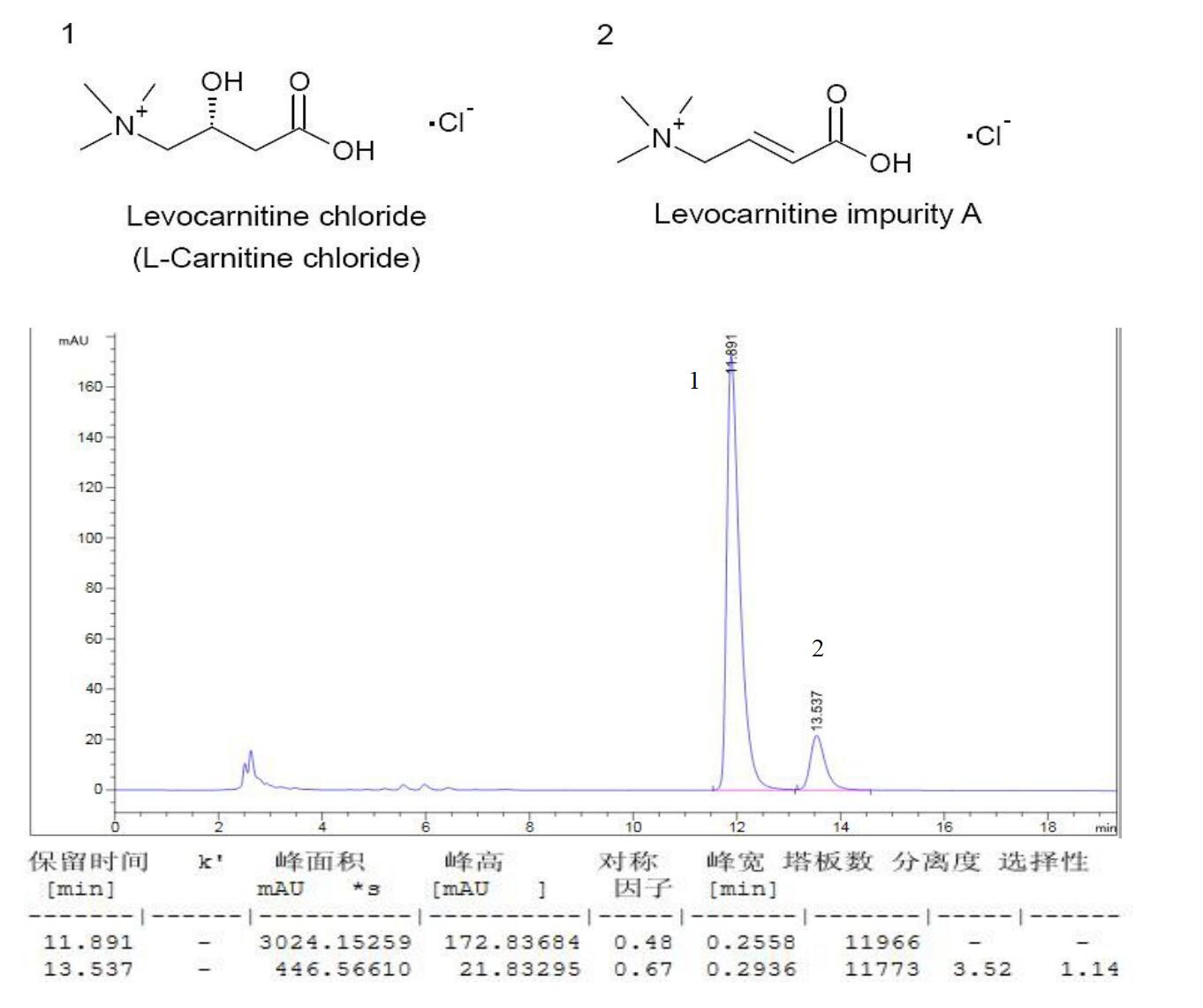 檢測方法的選擇:由于左卡尼汀和雜質(zhì)A在純水中不易被檢測到,因此需要選擇合適的檢測方法,如紫外檢測、熒光檢測、電化學(xué)檢測等,以提高檢測的靈敏度和準確性。同時,需要確保檢測方法與色譜柱相兼容。
