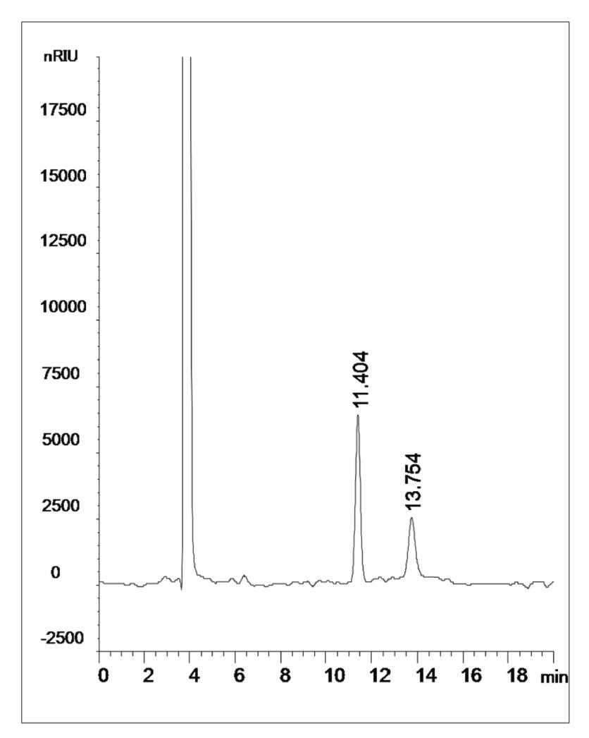圖 1: Mercury NH2 色譜柱乳糖及蔗糖標準品測試圖譜