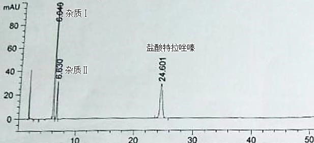 流動相:十二烷基硫酸鈉溶液[取十二烷基硫酸鈉 2.80g,加水至 1000mL;加入 11mL 溶液(202.4g/L 三乙胺和 230.0g/L 磷酸);最后,用磷酸調節(jié) pH 值至 2.5]-乙腈(60:40)